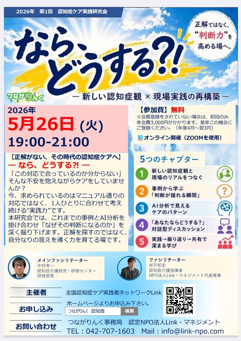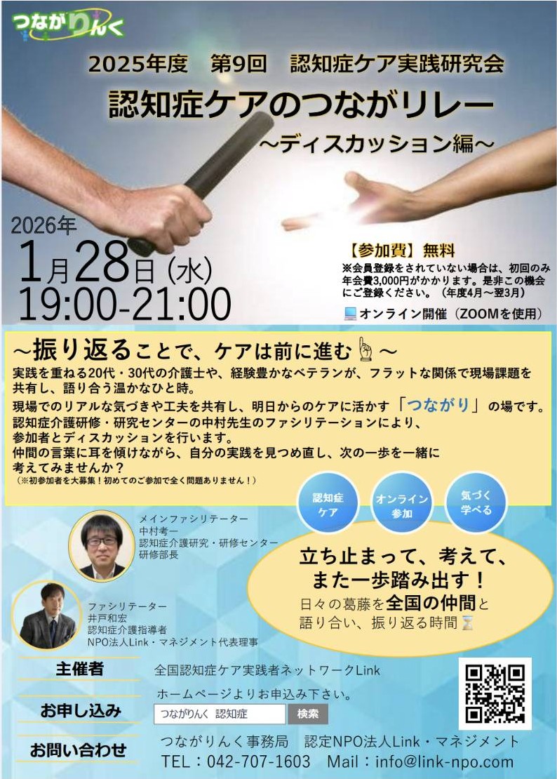 1月28日に開催予定のつながりんく『認知症ケア実践スキル研究…